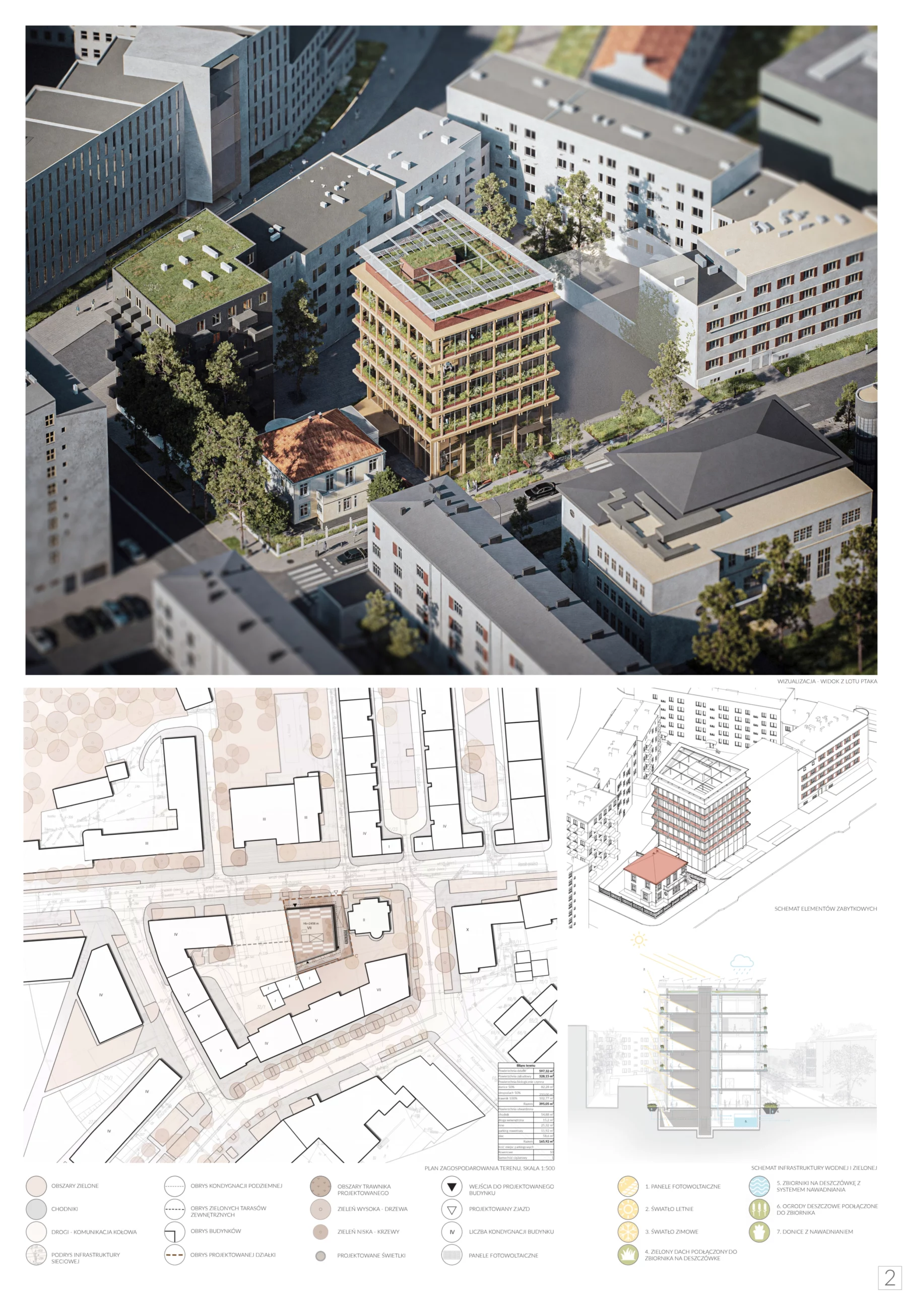 Koncepcja zakłada pełną dostępność dla osób z niepełnosprawnościami oraz zastosowanie proekologicznych materiałów i energooszczędnych instalacji, wpisując się w założenia paktu architektoniczno–urbanistycznego dla klimatu.
