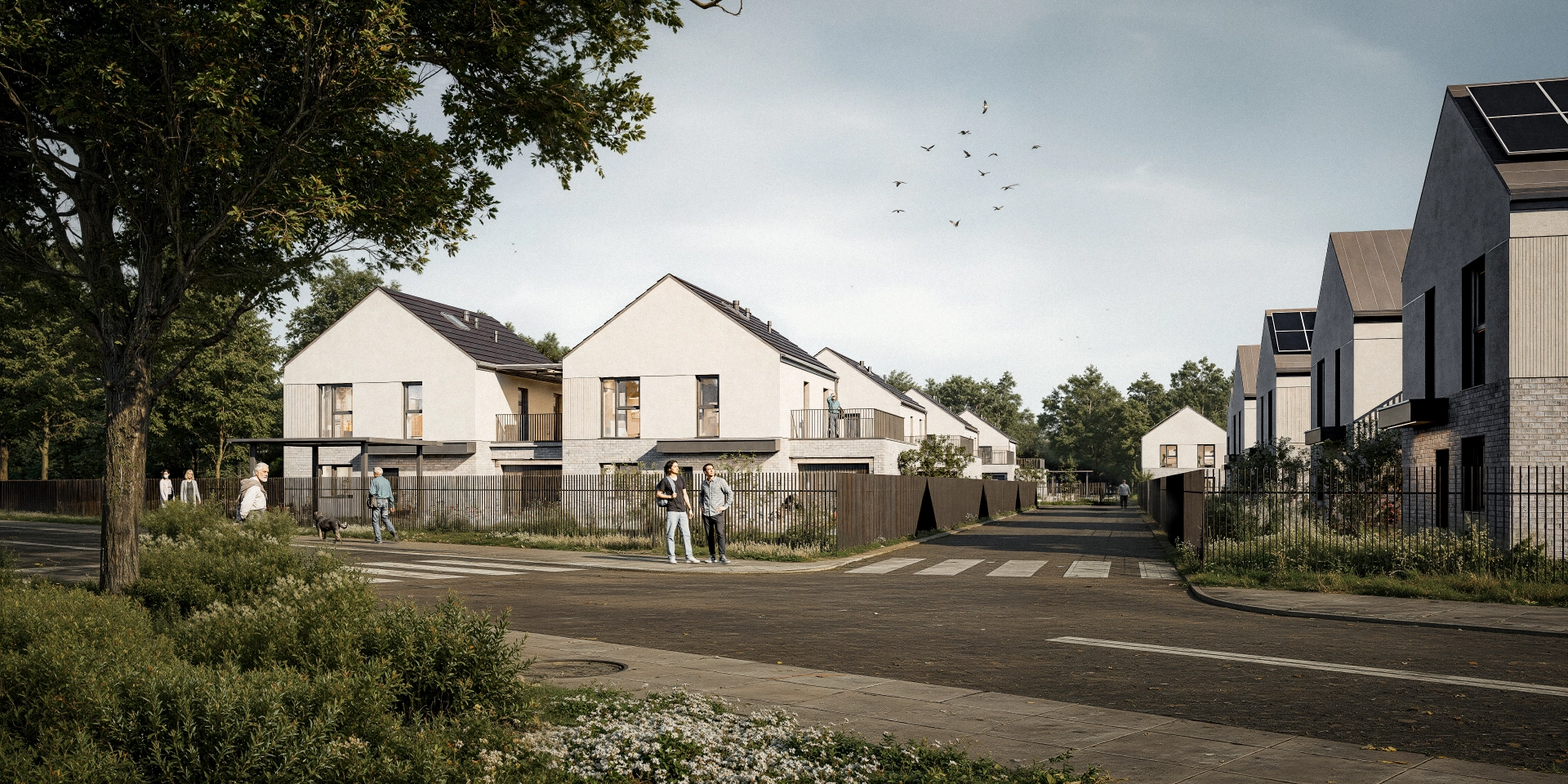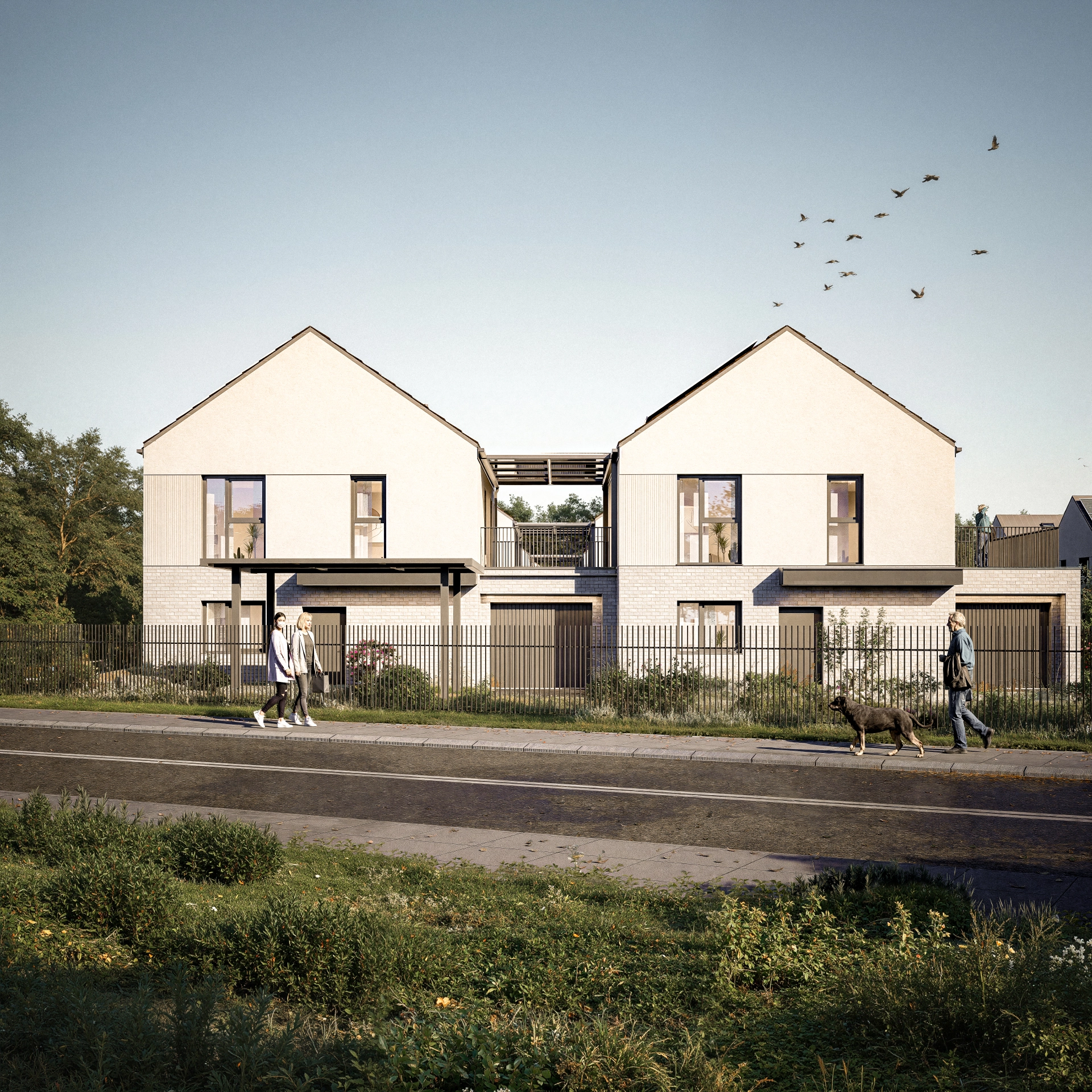 Domy zaprojektowano z myślą o wygodzie użytkowników – przestronne strefy dzienne płynnie łączą się z tarasami i ogrodami, a na piętrach znajdują się kameralne sypialnie z dostępem do balkonów. W projekcie przewidziano również zastosowanie rozwiązań proekologicznych, takich jak instalacje fotowoltaiczne i energooszczędne materiały