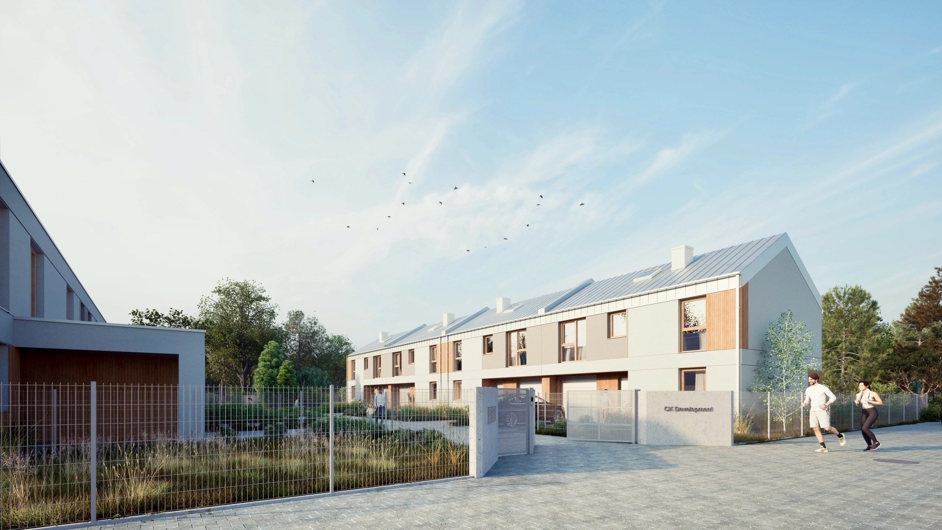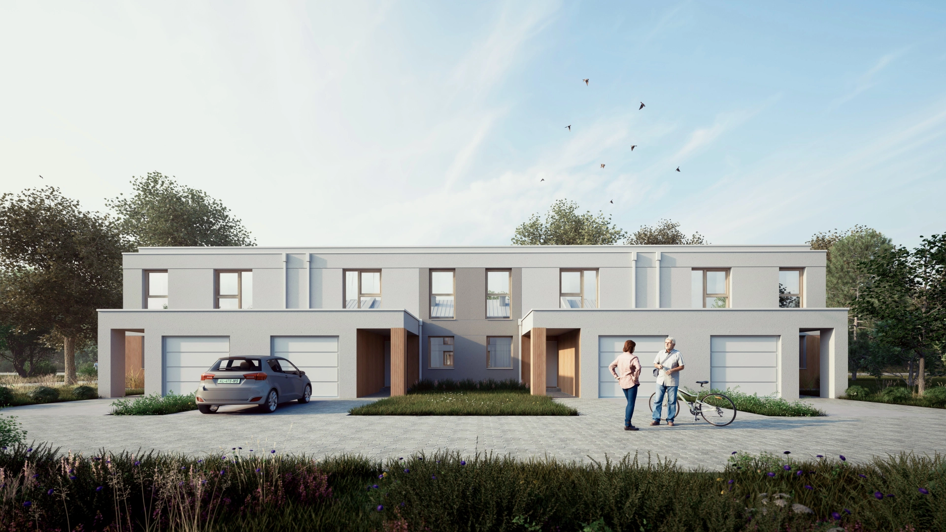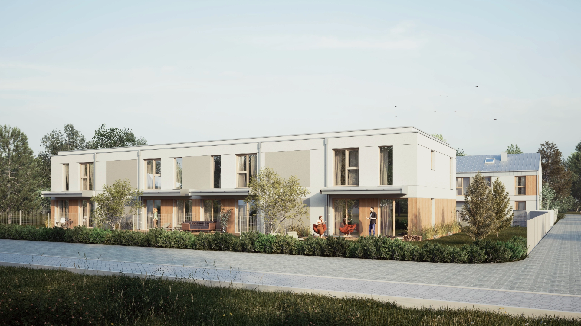 Inwestycję tworzą domy w zabudowie szeregowej o klarownych, nowoczesnych bryłach przykrytych dwuspadowymi dachami. Duże przeszklenia zapewniają naturalne doświetlenie, a przemyślane układy funkcjonalne oferują zarówno wygodne strefy dzienne, jak i komfortowe przestrzenie prywatne. Każdy dom posiada własny ogród, który staje się naturalnym przedłużeniem salonu i miejscem wypoczynku wśród zieleni.