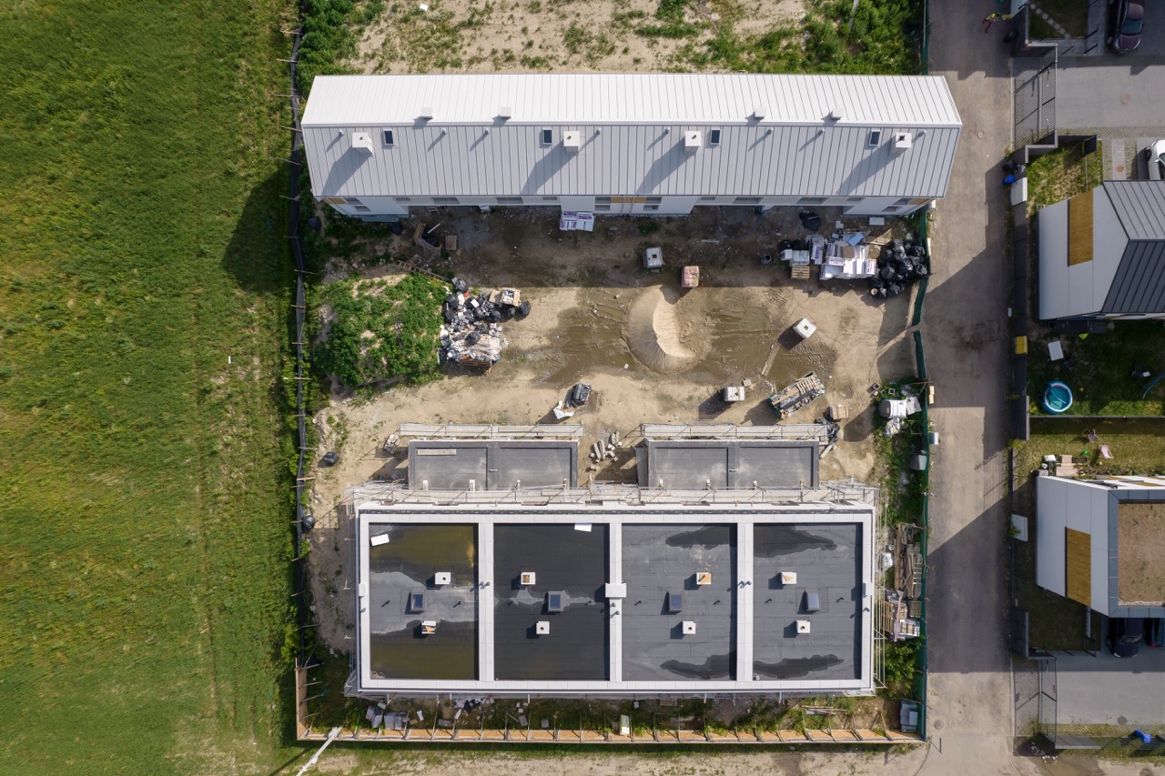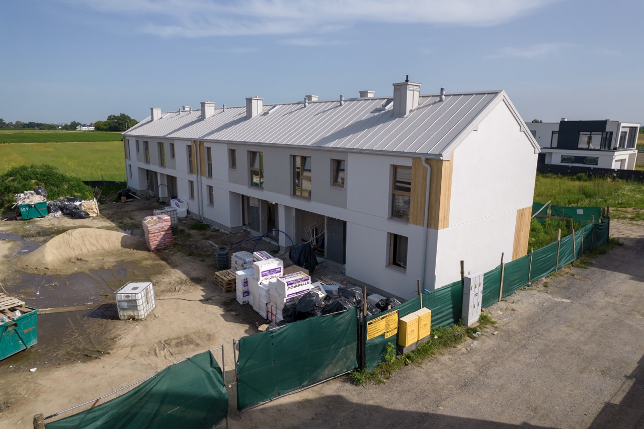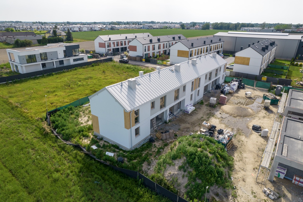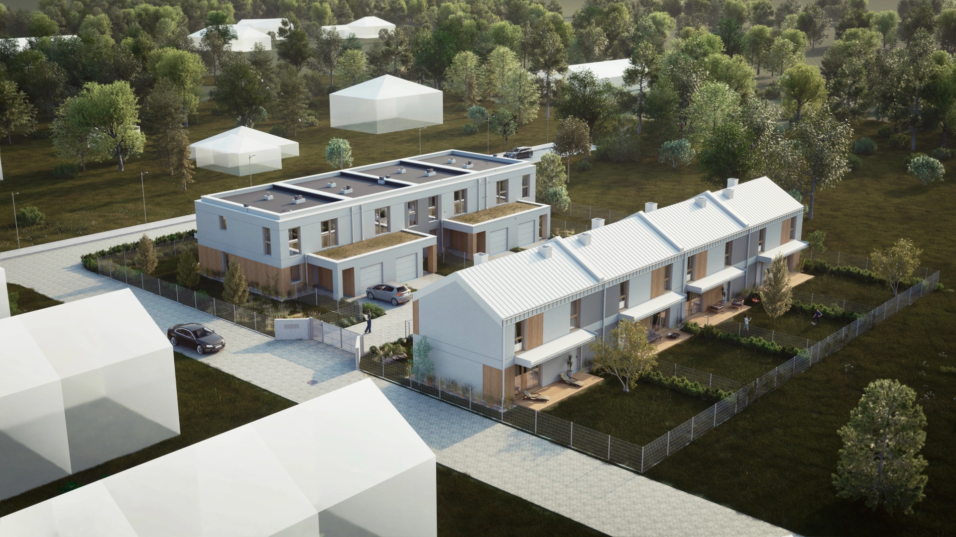 Inwestycję tworzą domy w zabudowie szeregowej o klarownych, nowoczesnych bryłach przykrytych dwuspadowymi dachami. Duże przeszklenia zapewniają naturalne doświetlenie, a przemyślane układy funkcjonalne oferują zarówno wygodne strefy dzienne, jak i komfortowe przestrzenie prywatne. Każdy dom posiada własny ogród, który staje się naturalnym przedłużeniem salonu i miejscem wypoczynku wśród zieleni.