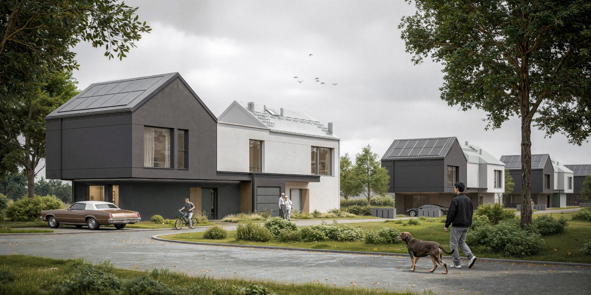Celem projektu było stworzenie osiedla, które łączy estetykę nowoczesnej architektury z funkcjonalnością codziennego życia. Jasne bryły budynków zestawione z grafitowymi akcentami oraz naturalnym drewnem nadają inwestycji elegancki i ponadczasowy charakter. Każdy z domów posiada własny ogród, co pozwala mieszkańcom cieszyć się prywatną przestrzenią i spokojem.