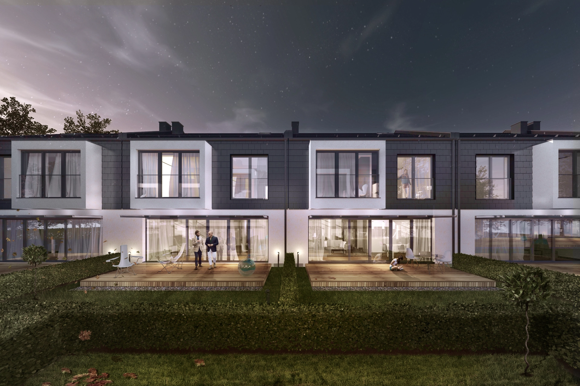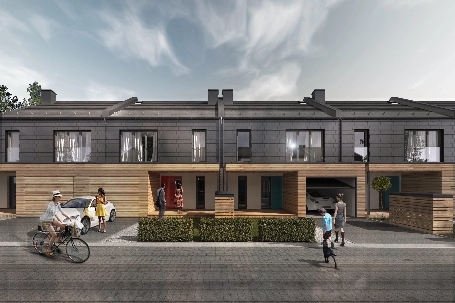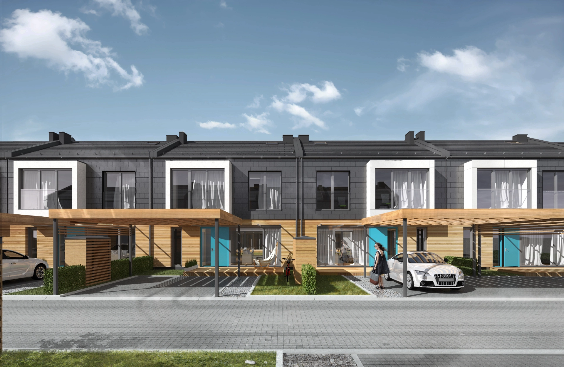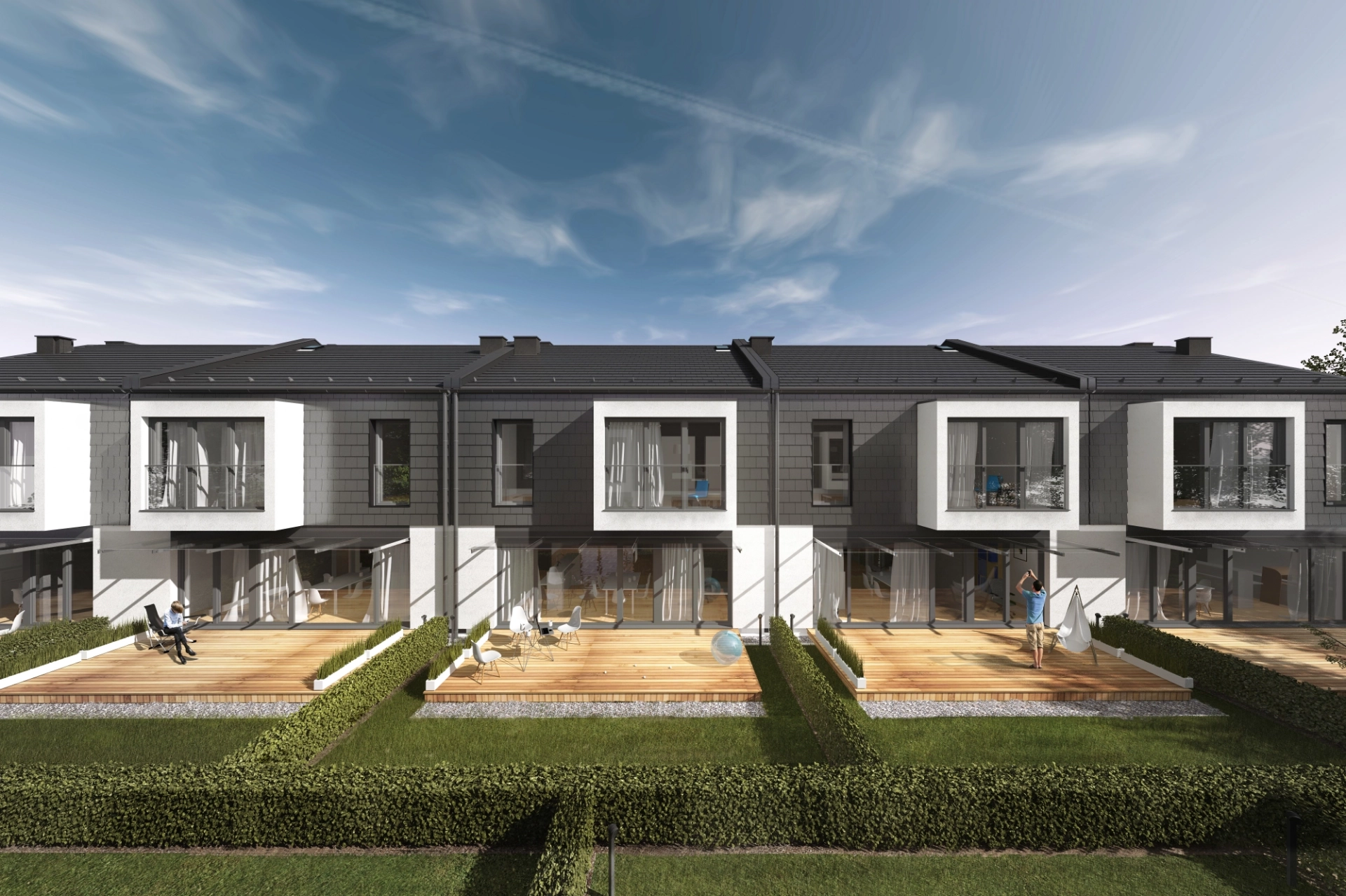 Główną inspiracją dla projektu REIHENHÄUSER było stworzenie przestrzeni mieszkalnej, która odpowiada na potrzeby współczesnych rodzin. Naszym celem było zaprojektowanie osiedla, które zapewni mieszkańcom poczucie wspólnoty, jednocześnie gwarantując indywidualną przestrzeń i niezależność. Koncepcja zakładała stworzenie domów otwierających się na własne ogrody i optymalizujących wykorzystanie naturalnego światła. Dynamiczna bryła budynków z nowoczesnymi detalami przełamuje stereotypy tradycyjnej architektury jednorodzinnej szeregowej.