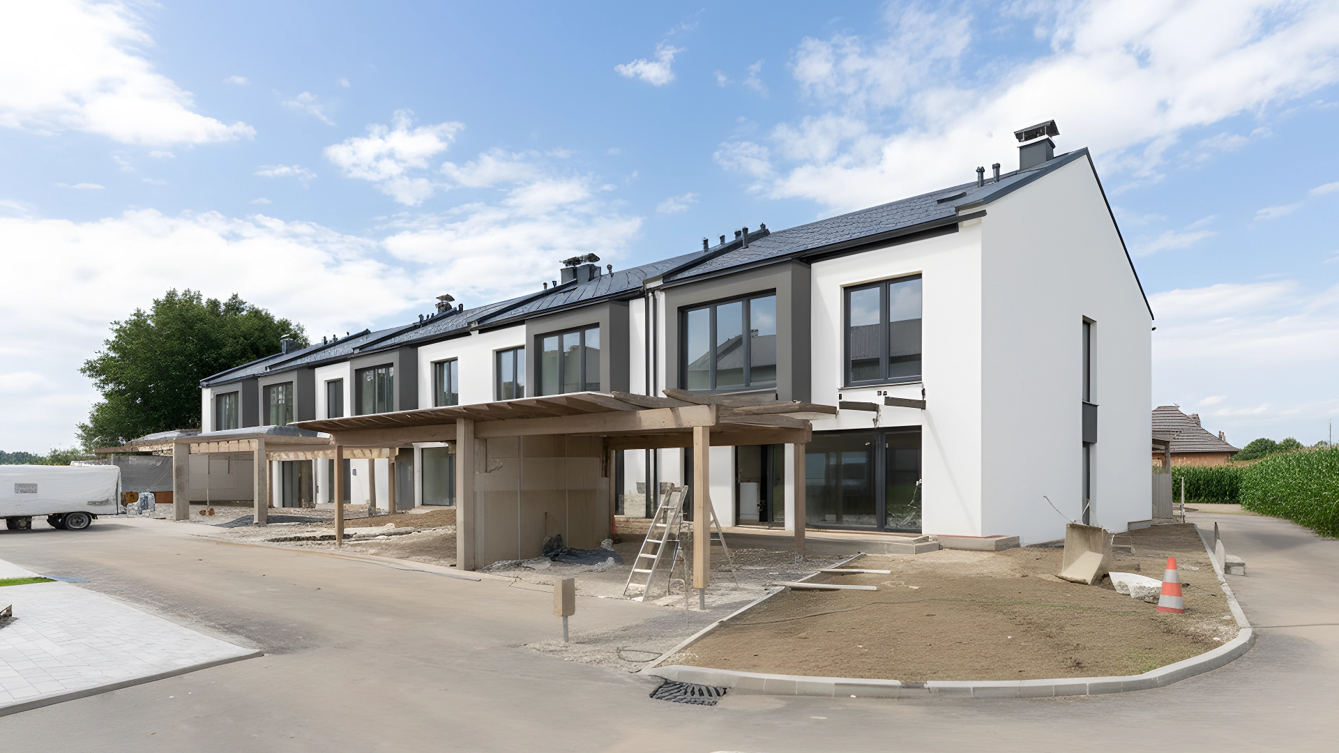 Usytuowanie domów szeregowych zostało starannie przemyślane, aby stworzyć spójne i przyjazne środowisko. Projekt zagospodarowania terenu wokół domów stanowi integralną część całości, tworząc harmonijną kompozycję z architekturą. Dbamy o przemyślane tereny zielone i komunikację wewnętrzną, która sprzyja interakcjom społecznym.